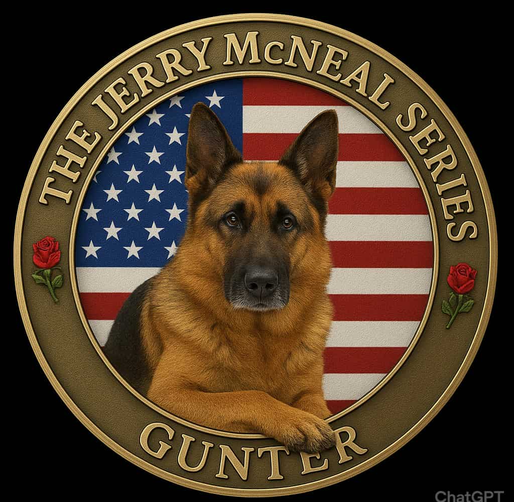 A postcard listing all the current Jerry McNeal Series titles in order